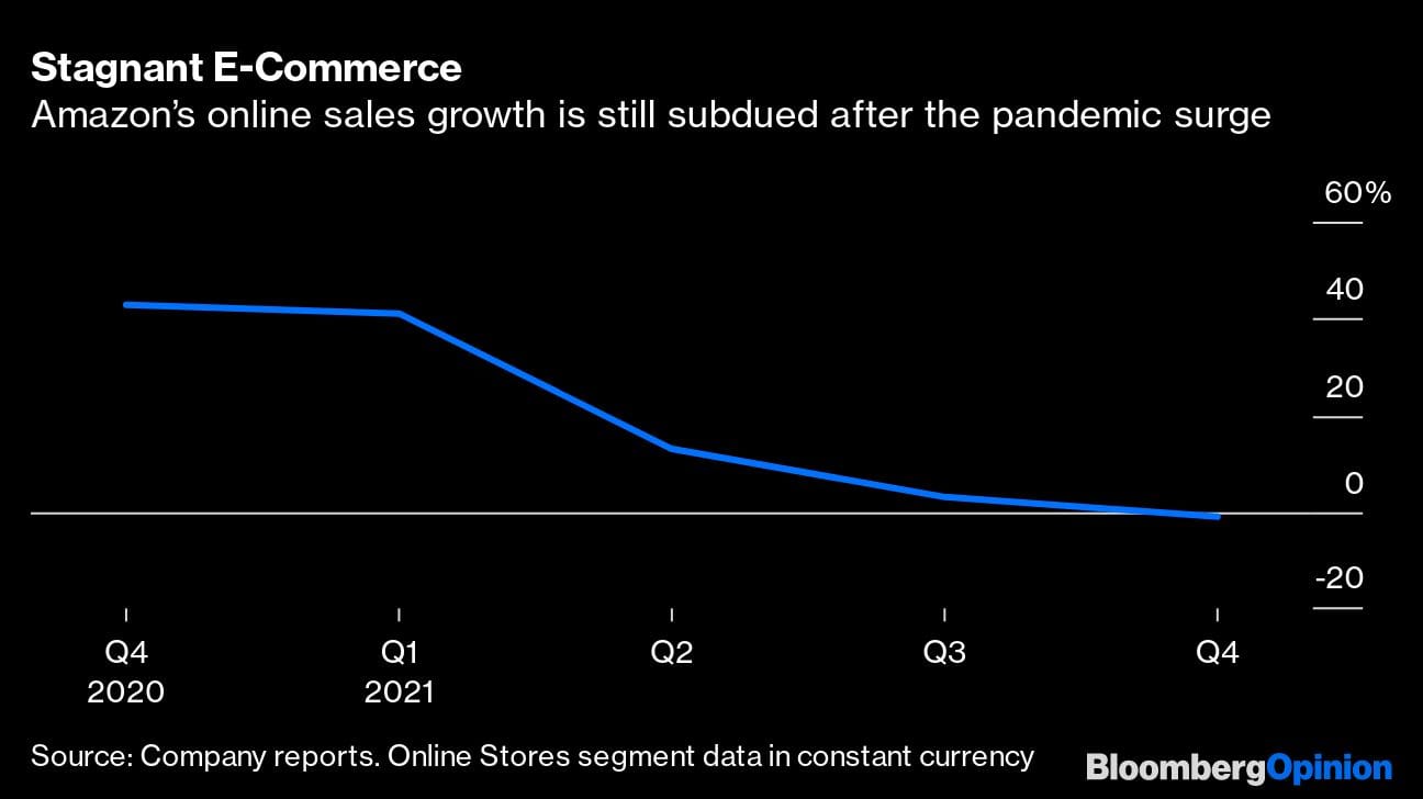 There are other warning signs. Amazon’s online sales fell slightly during the holiday period compared with those in the 2020 quarter, when it benefited from a sustained surge in online shopping during the Covid-19 pandemic.