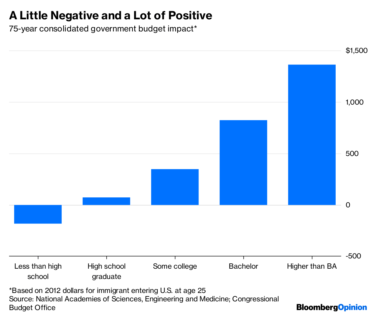 In an age in which most sources of rapid growth are drying up, skilled immigration is one of the last free lunches that the U.S. has. Even after Trump’s election, many talented foreigners want to live and work in America. The U.S. needs a better system for letting them come and contribute to the country’s greatness.-Bloomberg