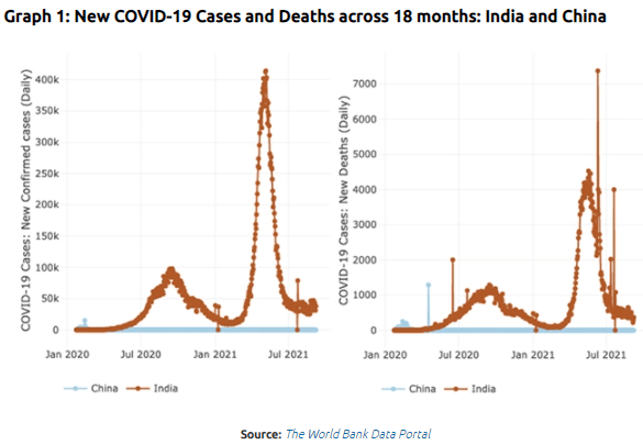China and India together constitute almost 40 percent of the world population, and both had imposed strict lockdowns early on, despite crushing economic costs. However, China—which had the first outbreak—was able to contain the virus much more efficiently than most other countries including India, and minimise COVID-19 deaths in the interim period when vaccines were awaited. With roughly comparable populations, the trajectory that the pandemic took in both countries, based on publicly available data, has been vastly different.
