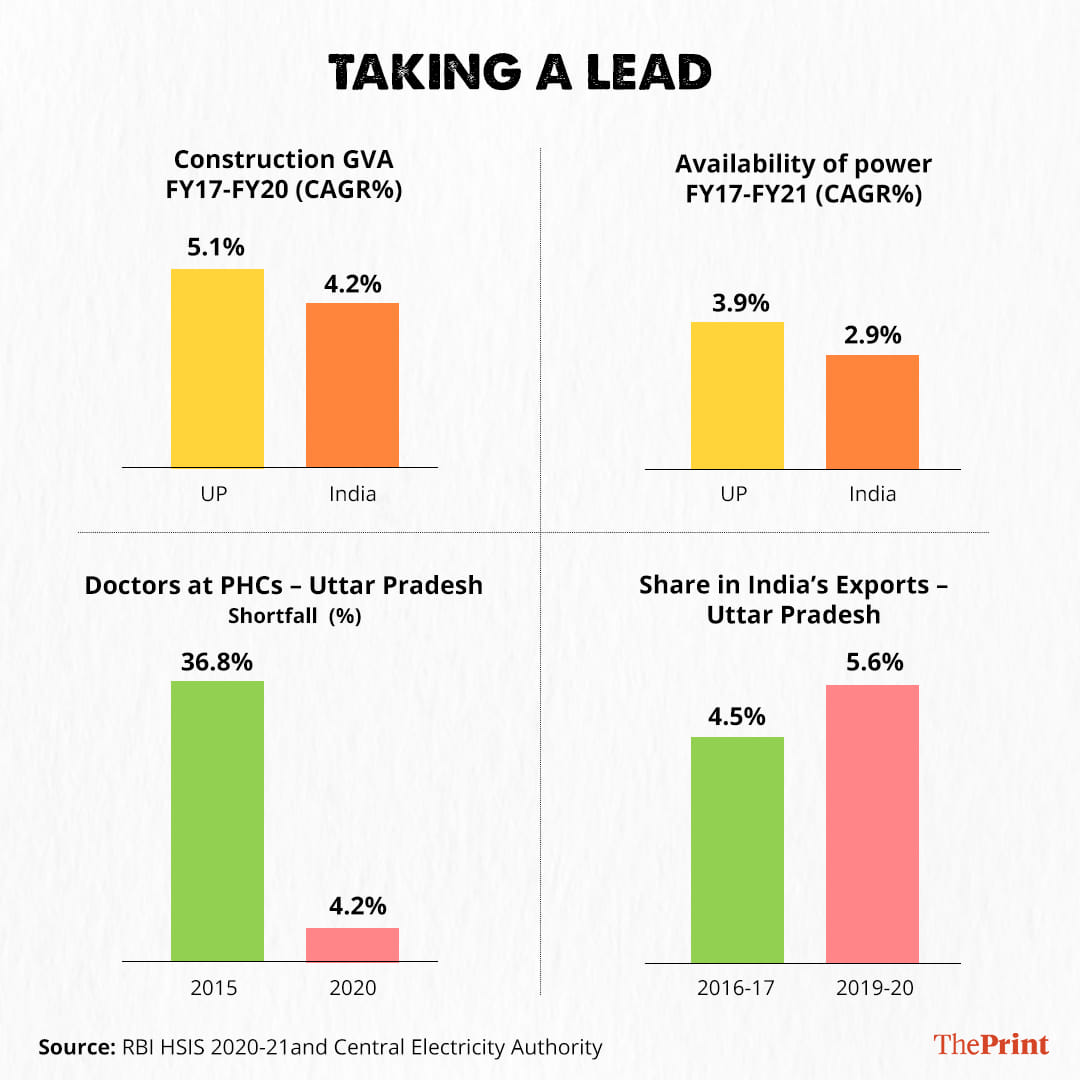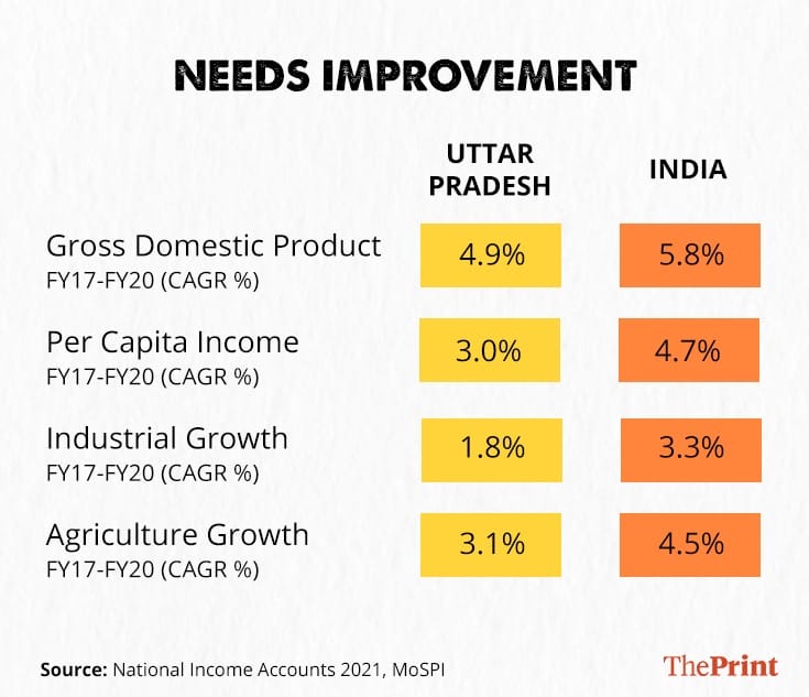 However, the hard data is mixed on economic performance over the past five years. Though the UP government’s focus on infrastructure projects like building multiple expressways, the Defence Industrial Corridor and electronics manufacturing clusters has resulted in improved performance in some sectors, the overall GDP growth, growth in per capita income, as well as industrial and agricultural sectors have continued to lag behind the national average.