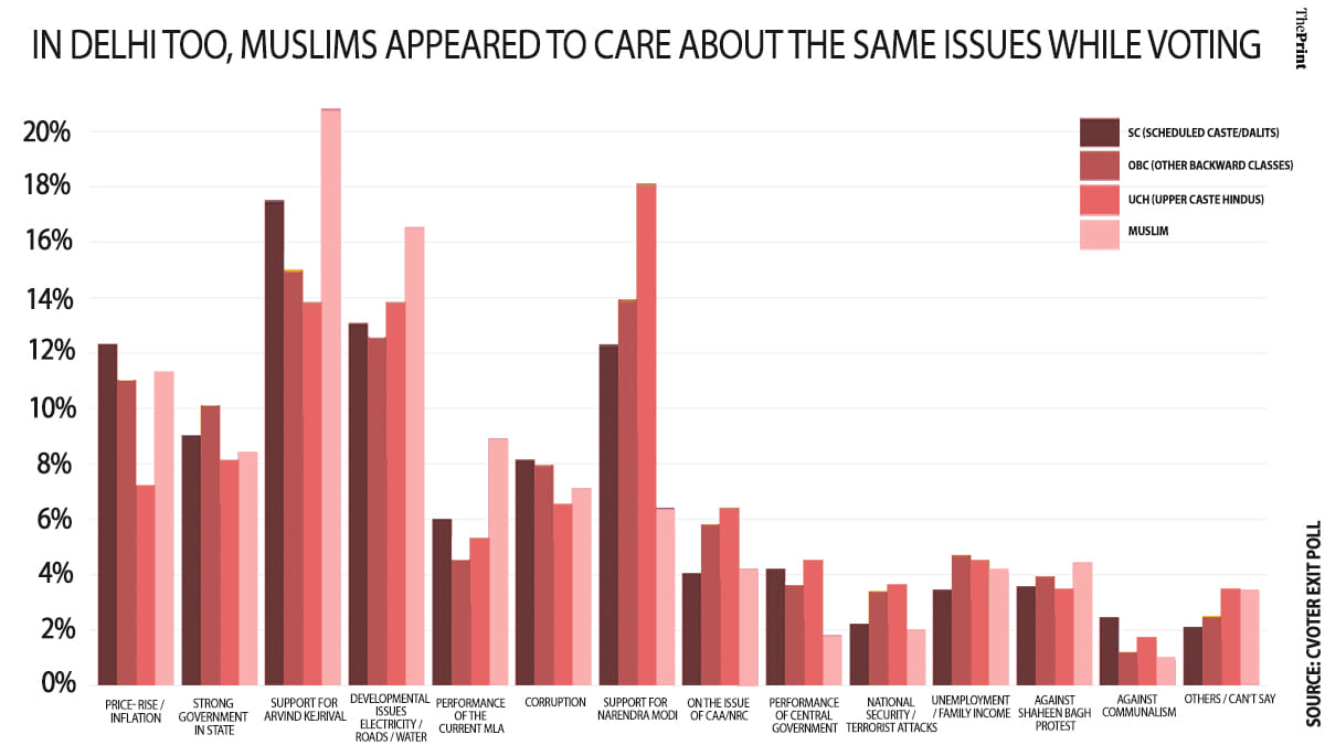 This appears to be the case in Delhi too where, on the face of it, Hindu and Muslim voters said that the same things mattered to them.