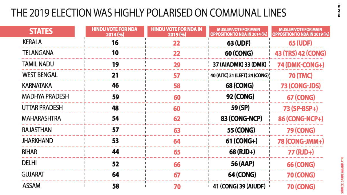 Since 2014, voters have become increasingly polarised on religious lines, with the 2019 Lok Sabha election representing the most communally polarised election ever, Lokniti-CSDS researchers Shreyas Sardesai and Vibha Atri argued in an article after the 2019 verdict.