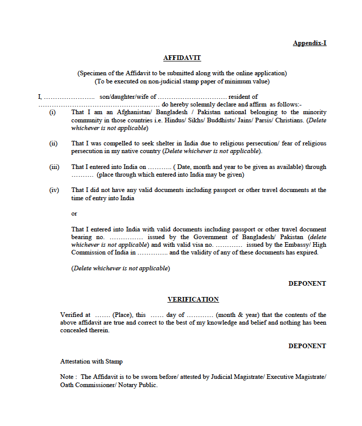 - A sworn affidavit, attested by a government authority, stating that you were “compelled to enter in India due to religious persecution or fear of religious persecution.”