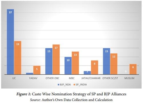 In comparison to 2 candidates of the BJP alliance, the SP alliance nominated 8 candidates from Jatav/Chamar castes. To match the nomination strategy of the SP alliance, the BJP alliance would have needed to significantly reduce the number of upper caste candidates, which the party could not afford to do.