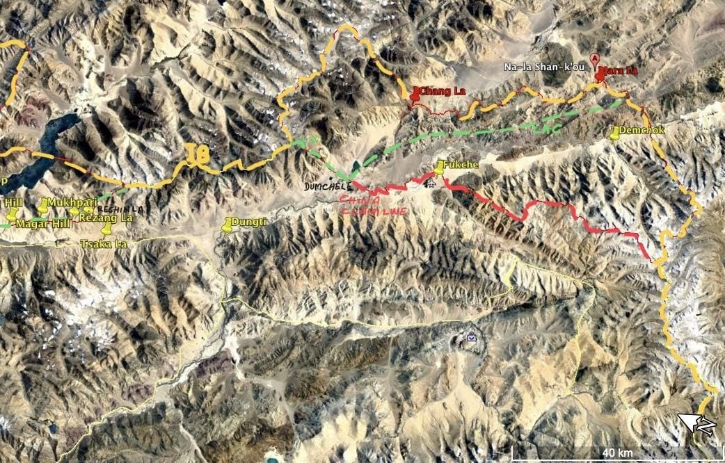In the Chushul Sector, the Claim Line coincides with the 1993 LAC allowing us to be in a dominant position by holding the Kailash Range. This is one tactical flaw in the 1959 Claim Line, which allows us to be in a position of advantage. Overall, the alignment, which is 10-15 km west of the 1947 International Border (IB), provides depth to Rudok through which the G 219 road passes.