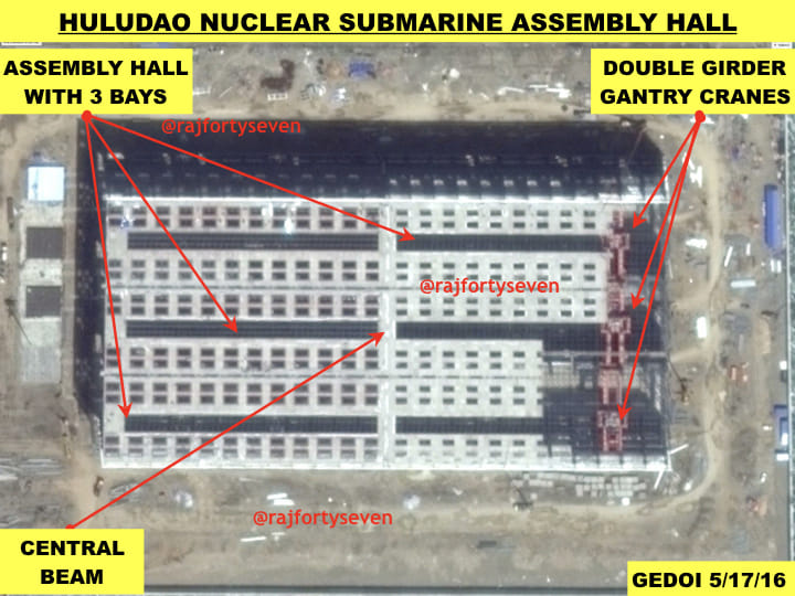 Xi Jinping’s ‘China Dream’ gave boost to the Blue Water navy ambitions and possibly funds were made available for the expansion of BSHIC’s nuclear submarine programme. The new facility on the Eastern side of Bohai shipyard started construction in mid-2015. The construction became visible and clear by mid-2016.