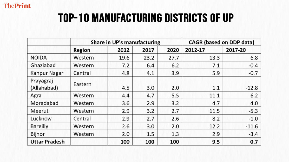 Second, the growth of manufacturing in Gautam Buddha Nagar district has slowed down substantially from 13.3 per cent (2012-17) to 6.8 per cent (2017-20).