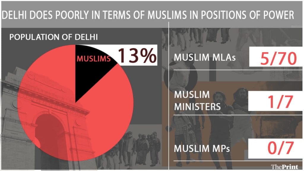 How does Delhi, with 13 per cent of its population Muslim, do in terms of minority representation?