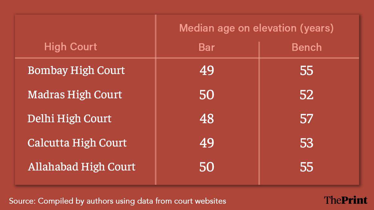 This divide is only set to increase with the minimum practice requirements that have recently kicked in. A person is required to practice for three years before attempting the judicial services exam. This has two implications for the composition of the higher courts’ benches. First, it excludes those who can’t afford to practice before district courts. Second, it reduces the chances of district bench members to “make it” to the high court at an earlier age.