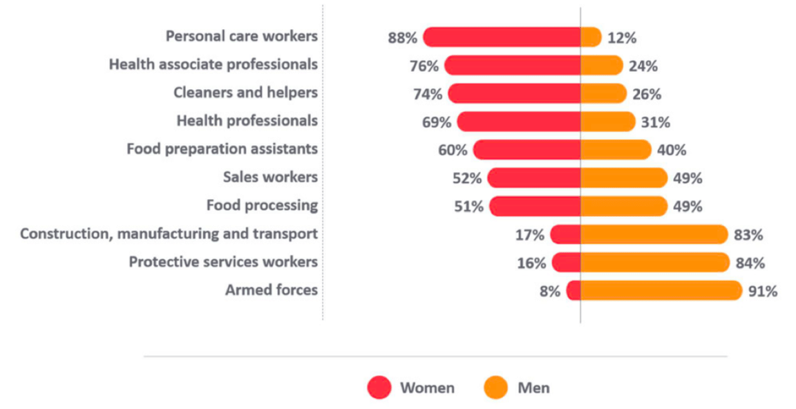 Health-related challenges: Data from 92 countries suggests that while men are more likely to die of Covid-19 in the six analysed countries, in some countries it is women who are more likely to contract the disease. Reports also suggest that in some socially conservative countries in Africa and Asia, women may be left out of testing, leading to a substantial under-reporting of Covid-19 cases among women. 69% of health professionals globally are women, therefore they are more exposed to the virus. Women’s reproductive and sexual health are at heightened risk due to key services being scaled back and resources previously used to support women’s reproductive and sexual health being redirected to the containment of Covid-19.