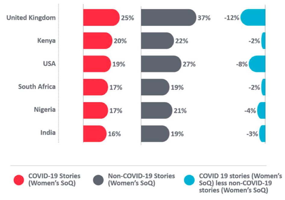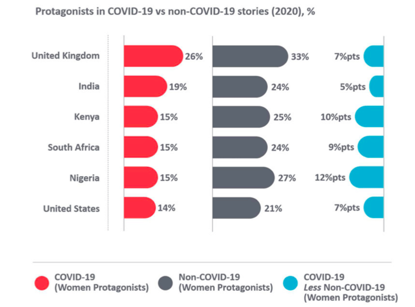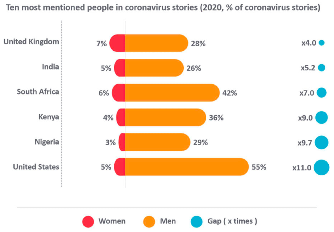 Despite the unique socio-cultural, economic, political, health-related and educational challenges that women face, their perspectives are universally and significantly outweighed by the perspectives of men featuring in the news about Covid-19.