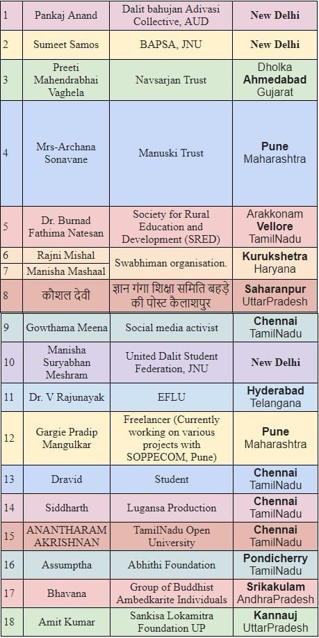 The events that we are supporting for Dalit History month include celebrations at Indian universities like English and Foreign Languages University, Jawaharlal Nehru University, Ambedkar University Delhi and Savitribai Phule Pune University. The events will be held by radical Dalit women collectives and leaders like Fatima Bernhard and Cynthia Stephen, and Buddhist organisations like Manuski trust. You can read the full list of events below. Dalit History Month as a whole is growing all around the world, with new events in Germany, the UK, and the US.