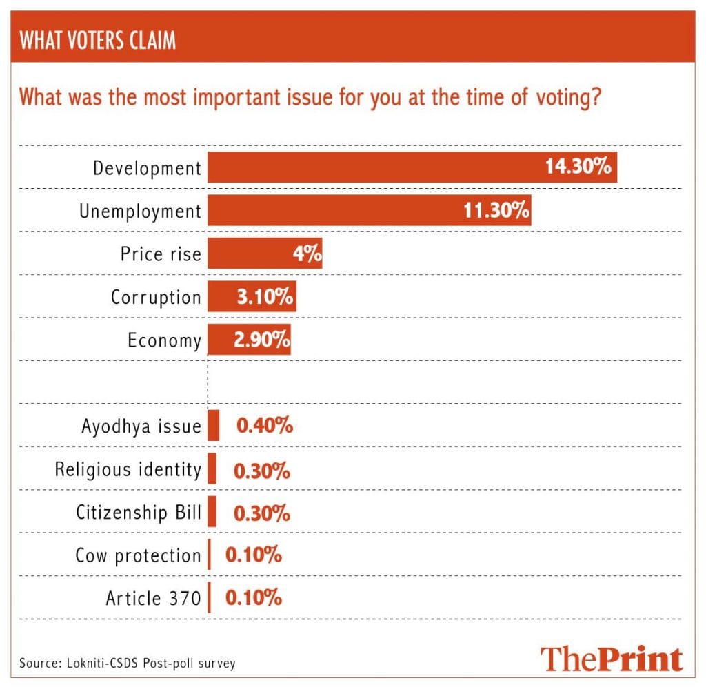 Political commentators like to remind the public that Indian voters don’t really care about religion. “Development”, they say, is the only issue on the voters’ minds and they don’t care about “that mandir-masjid stuff”. Voters certainly give that impression. After the 2019 Lok Sabha election, voters said in a post-poll survey that development and unemployment were the top issues for them at the time of voting. Key ‘Hindutva’ issues like cow slaughter and Ram Mandir in Ayodhya were barely on their minds, they said.