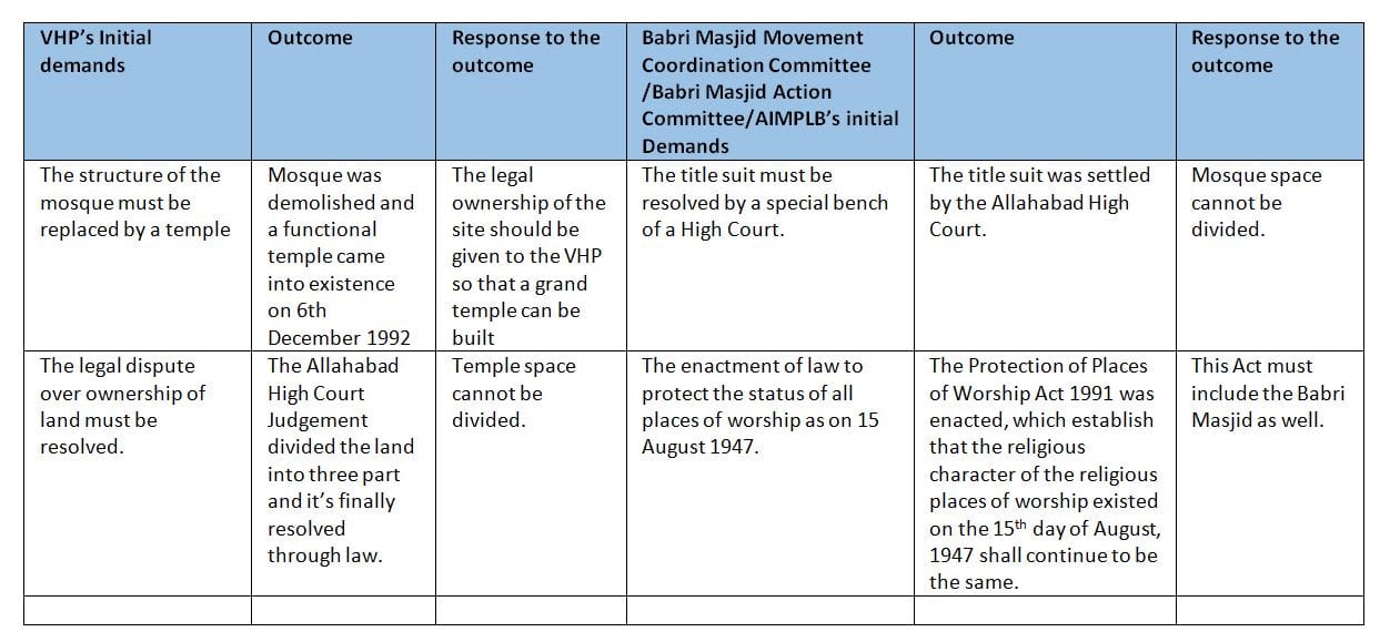The Babri Masjid case was not just a simple Hindu-Muslim conflict. It was actually an outcome of a complex legal battle between various local stakeholders.