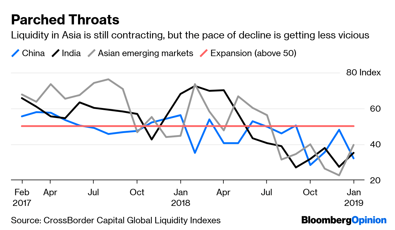 Look beyond the coming Indian elections and a keenly awaited China-US trade deal, though, and there are reasons to turn cautiously optimistic. With inflation slowing, the dollar’s upward march temporarily halted, and the US Federal Reserve hinting at a pause on its balance-sheet contraction, central banks in the region don’t have to worry that easing domestic monetary policies will collapse their currencies.