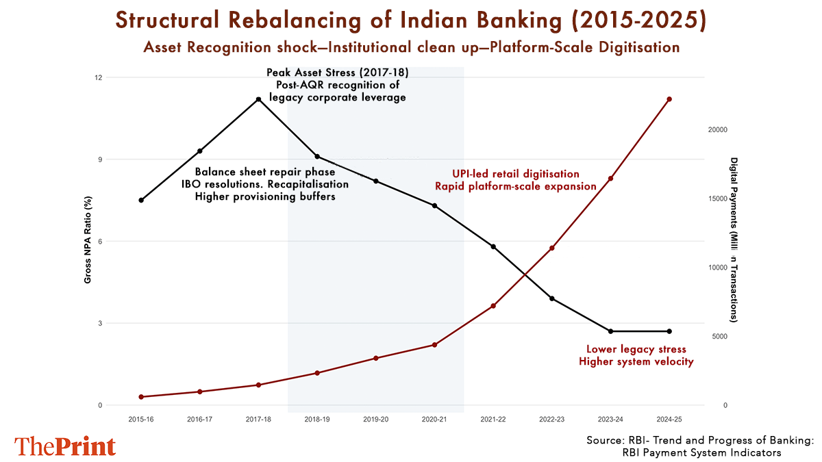 The contrast we see in the graph above is quite telling. As legacy credit stress was acknowledged and gradually addressed, digital transactions expanded at an unprecedented rate. Risk has not been eliminated; rather, it has changed its form—shifting from balance-sheet strain due to non-performing loans to the operational challenges of managing vast, rapidly evolving digital flows.