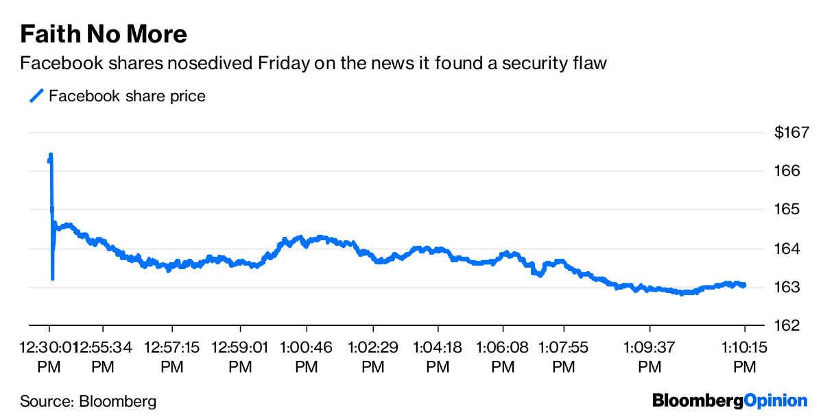 At least based on the available information from Facebook, the company acted quickly and responsibly once it discovered the technical vulnerability. But again, it doesn’t matter. Facebook shares dropped more than 3 percent on the news, and it set off another round of news reports that reminded people about Cambridge Analytica, Russian propaganda, Myanmar violence and more. (Facebook lost more market value from the security flaw than Tesla lost on Friday after its CEO was sued by the government for securities fraud.)