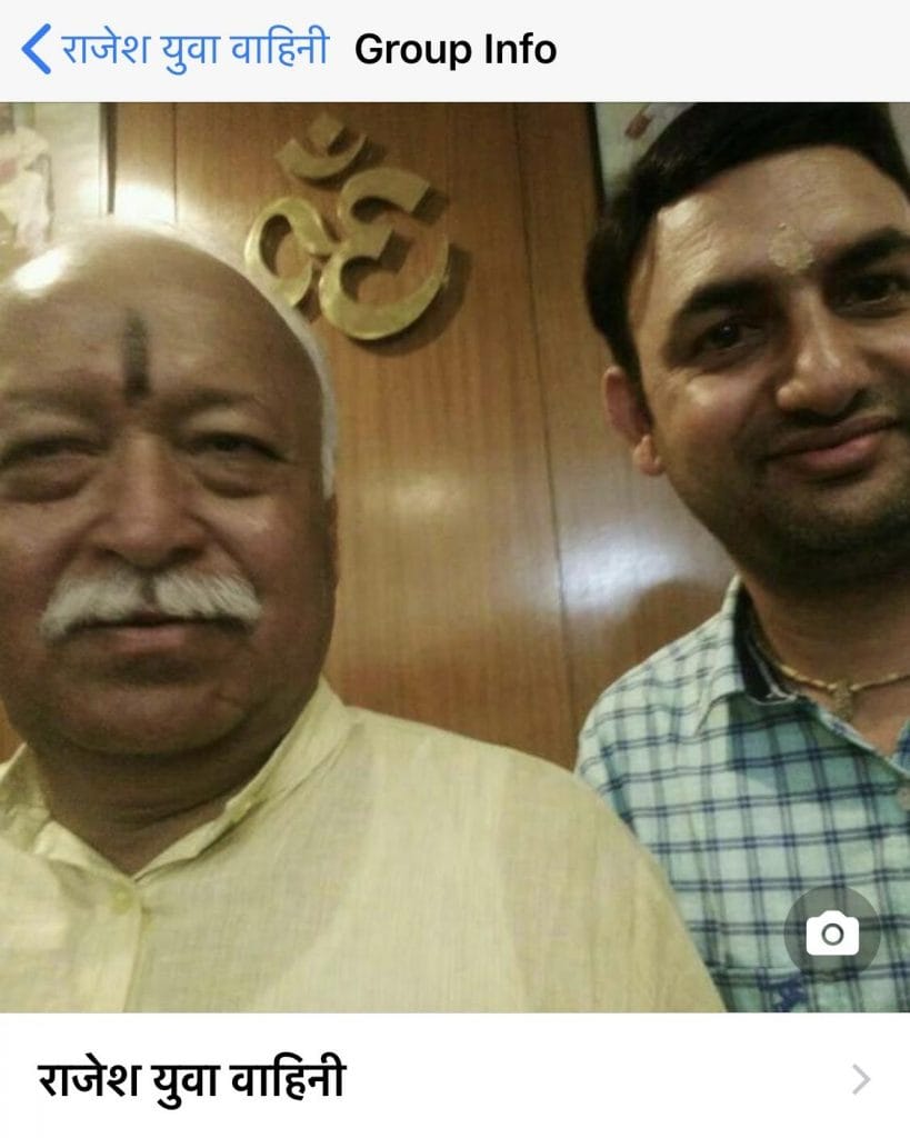 Here’s the group’s profile picture. Perhaps that’s the eponymous Mr. Rajesh with RSS sarsanghchalak Mohan Bhagwat.
