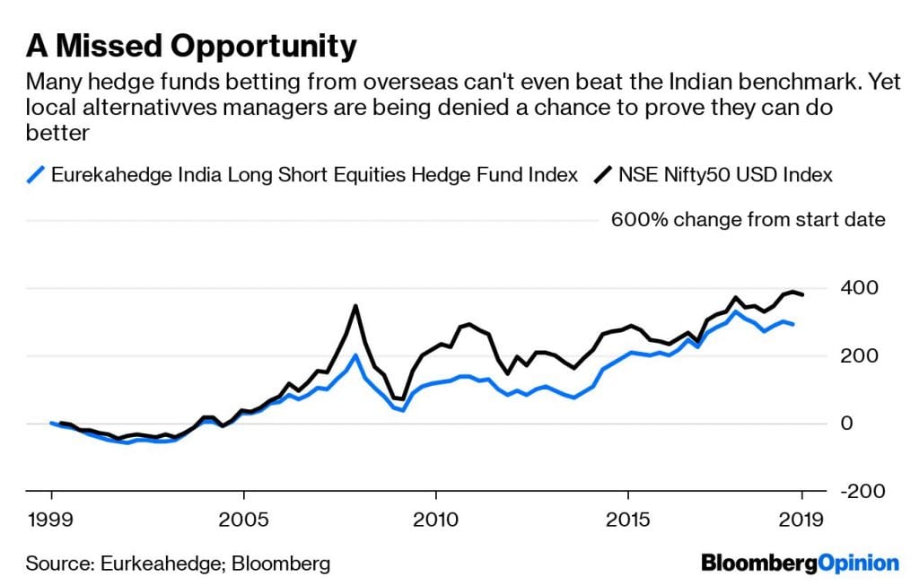 That industry is domestic hedge funds, which have taken seven years to reach $6 billion in investment commitments from nothing. By contrast, equity investment in India by overseas financial investors is upward of $400 billion.