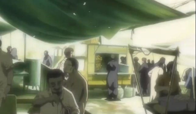 The story also introduces other interesting characters. One is Rahmani’s observant and sharp-minded son, Ahmad, and the other is Rashid, the well-informed but anxious journalist friend of Yugo’s. Then there is Colonel Shadle, a ruthless military official who doesn’t seems too concerned with the hostage’s life. However, the anime gives depth to the character by showing us his perspective and highlighting how the military understands the dacoit threat.
