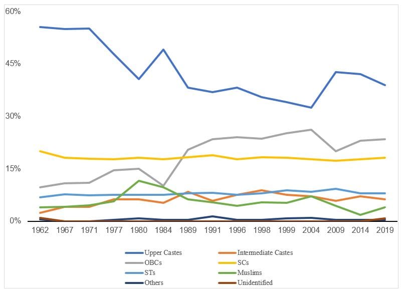 Figure 2: Caste and community representation in the Hindi Belt (1962-2019)