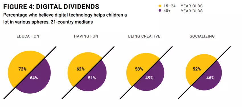Overall, the younger generation sees far fewer risks and more benefits from children’s online lives than those in older generations.