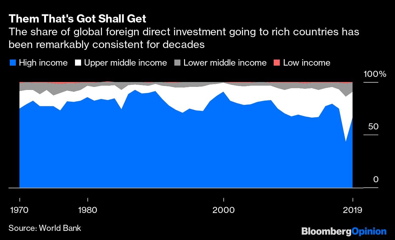 Rich countries shouldn’t take this as a reason to avoid their own difficult choices. As much as developing economies may want to decarbonize, they’re still held back by the scanty availability of cash to build new power plants. The majority of the cost of running a fossil-fired generator is incurred in buying fuel over the course of its operating life, but almost all of the expense for wind or solar comes at the construction stage. That gives a lingering advantage to coal and gas because rich nations historically have been reluctant to extend the sort of up-front, long-term lending to emerging markets that renewable projects need.