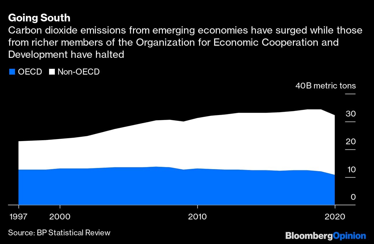 While the rich nations of the global north have led calls to rein in emissions, their less affluent counterparts have largely remained on the sidelines. The Kyoto Protocol was in essence a treaty between the wealthy Group of Seven nations, the former Soviet Union, Australia and New Zealand. Even after the 2015 Paris Agreement brought developing countries into the greenhouse-target club for the first time, emissions from the Organization for Economic Cooperation and Development fell 2.7% in the four years to 2019, while those from lower-income nations grew 7.2%.