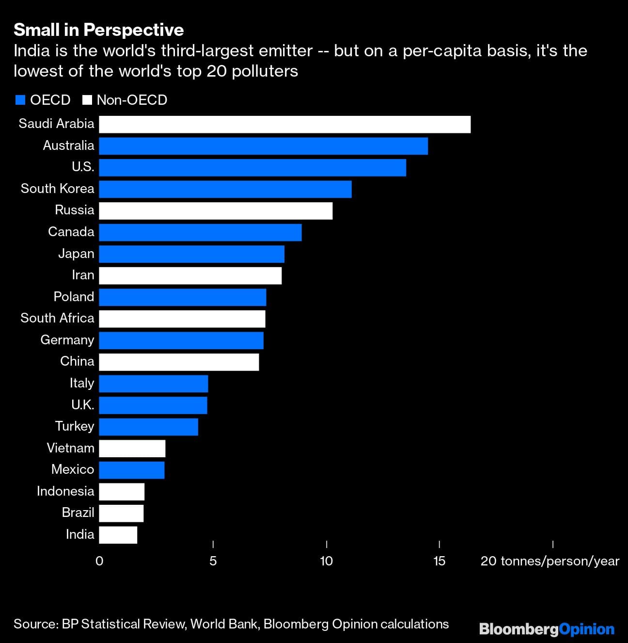 The challenge for both sides is to look beyond their pasts and glimpse the scale of opportunity ahead. India has one of the lowest rates of emissions per person of any major economy. It now has a chance to do something no comparable country has achieved before: growing affluent using cheaper, greener power that didn’t exist until a few years ago, rather than at the cost of its citizens’ health and a despoiled environment.