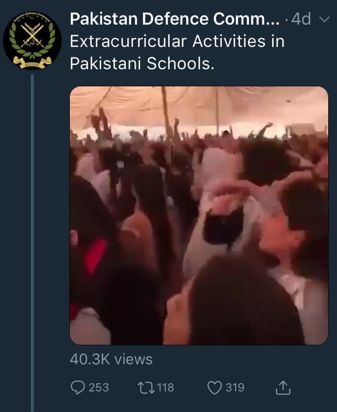 Let me quickly demonstrate. A tweet by Pakistan Defence Command @PDCMDOfficial and the responses was my trigger to write this article. This account posted a video of girl children dancing at a school function and condemned them. Nothing new by this kind of people.