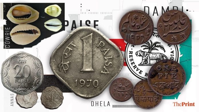 Etymologically, the term ‘Rupee’ comes from Rupaya or Rupa, and the first reference can be traced to the ‘Astadhyayi’ by Panini, from the Panchnad (Punjab) province, dating back to the 6th-4th century BCE. Initially, a Rupaya was equivalent to 5,275 ‘phootie cowries’, which were small sea shells. Over time, various denominations emerged, including ‘damri’, ‘pie’, ‘dhela’, ‘paisa’, ‘taka’, ‘anna’, ‘dowanni’, ‘chawanni’, ‘athanni’, and finally a ‘rupaya’.