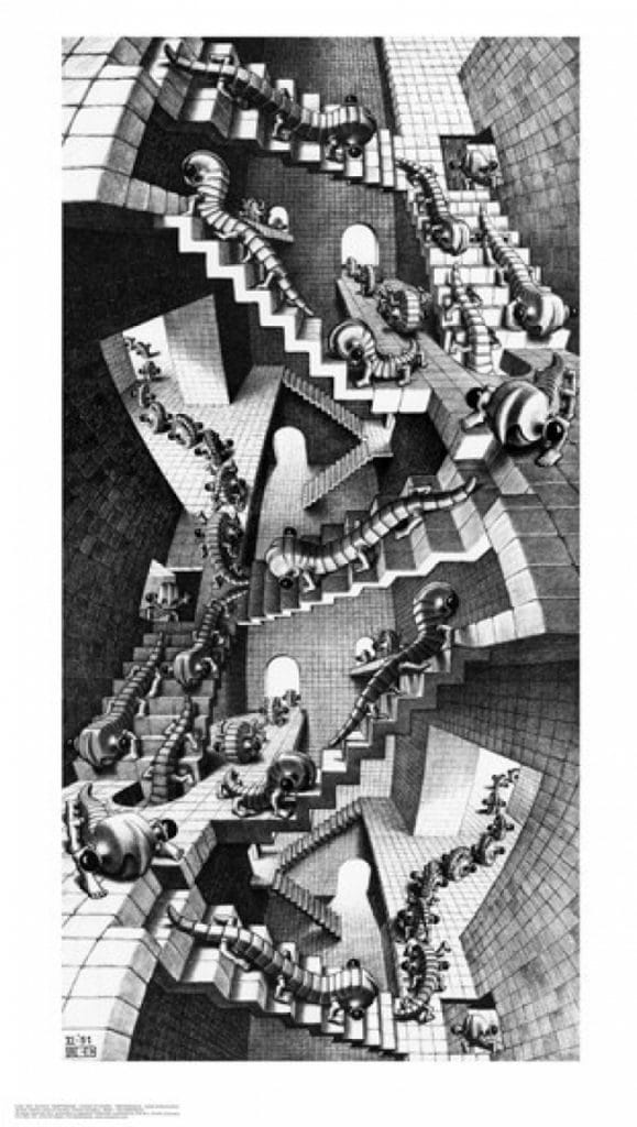 The GST was part of a big bang reform that India has been working toward for years. But even after more than two years, the spiral of compliance paperwork that it has locked small businesses in is massive. The long, painful days after demonetisation, the queues and paperwork triggered by the NRC in Assam remind you of the famous 1951 painting called ‘House of Stairs’ by Dutch artist M.C. Escher – people busy climbing a claustrophobic maze of stairs, constantly going somewhere, arriving nowhere. That’s India now.