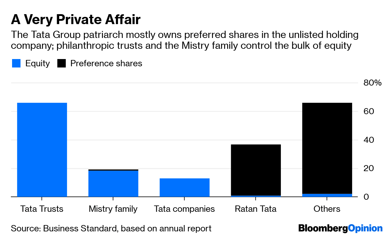 Investors’ concerns haven’t fully dissipated, and that shows the problem with the sprawling Tata Group’s structure. In the current scheme of things, the holding company and its 66-percent owners – who happen to be charitable trusts – depend on payouts from software services provider Tata Consultancy Services Ltd. as well as Jaguar Land Rover to keep the empire ticking.