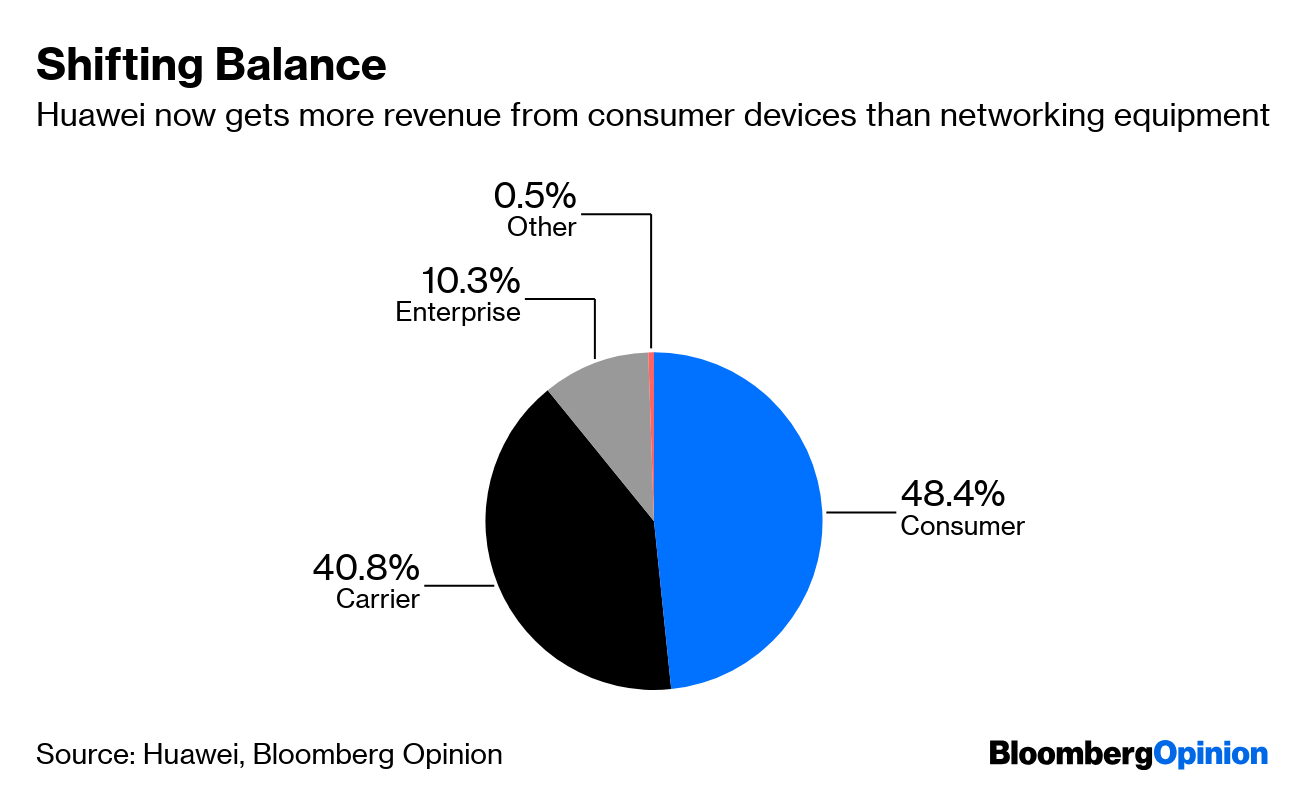 For all the hullabaloo about Western nations banning network equipment made by Huawei Technologies Co., the importance of that business to the Chinese company is decreasing.