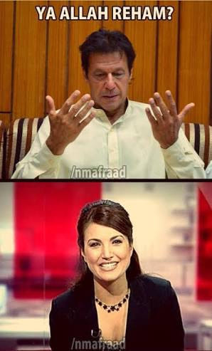 Immy faced problems of his own. His ex-wife has tried her best to prevent him from winning. Reham Khan’s first name means mercy. As her book made a multitude of damaging accusations about Imran, this meme shows Imran asking Allah for ‘reham’, or mercy.
