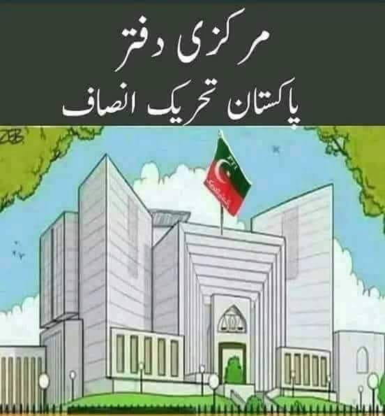 The meme below has a sketch of the building of the Supreme Court of Pakistan with a PTI flag on it. The Urdu reads, “Markazi daftar (central office), PTI.” The apex court has been accused of helping the PTI this election by going hard on its rival, the PML(N) led by Nawaz Sharif.