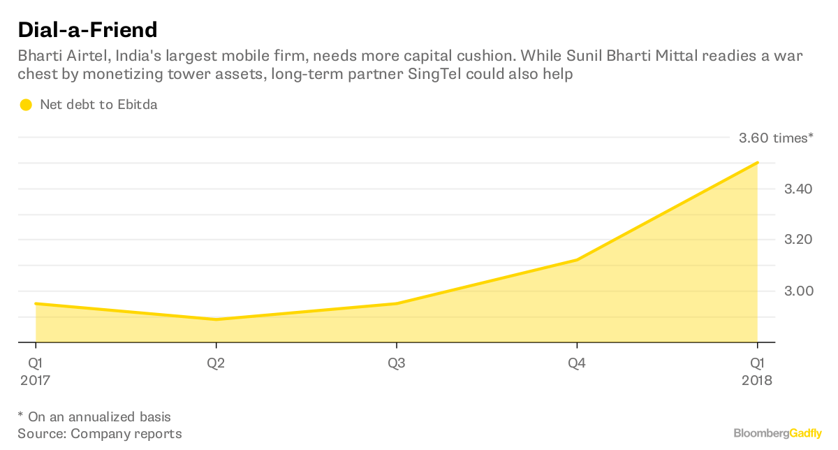 To withstand Ambani’s triple play of carriage, content and commerce, Mittal will need to offer customers more than free Netflix. Given a net debt to Ebitda of more than 3 times, capital infusion into the network would need to come from equity. That’s why the tower merger, which will allow Bharti to cash in by selling a stake, is a good first step. Listing the promising Africa mobile business is another opportunity.