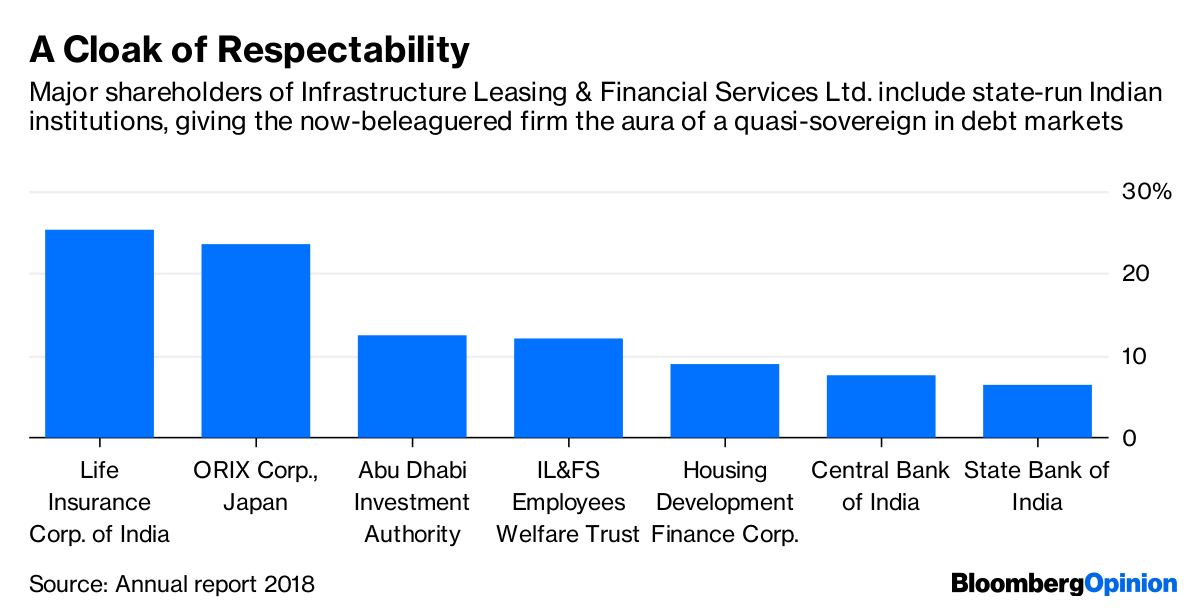 Shocks are starting to reverberate amid an avalanche of ratings downgrades. That’s only to be expected: On the hook for the group’s $12.5 billion debt are banks and mutual funds. (IL&FS itself is a motley collection of shadow lenders that don’t take deposits.)