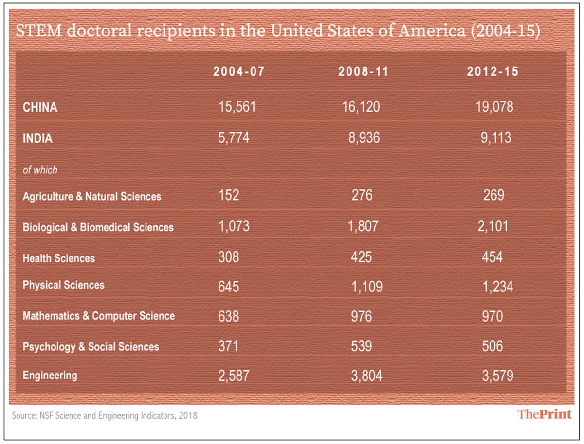 The largest number of Indian researchers training overseas is in the United States, and while their number has increased considerably over the last decade, the annual number – about 2,300 – is relatively small compared to the country’s needs. While in the past the majority would stay behind in the US, that has dropped to about half more recently.