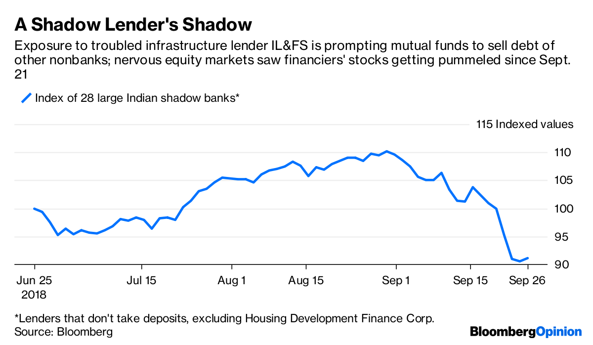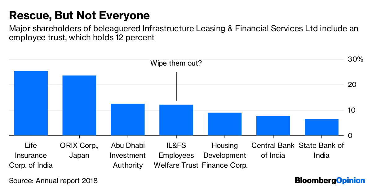 The irony is that the same Life Insurance Corp. may now have to lead the rescue of IL&FS before the money market’s exposure to its toxic debt deepens a liquidity crisis for other shadow banks — a sort of a mini-Lehman moment for India. However, it would only be fitting to wipe out the 12 percent stake held in IL&FS by the employees’ welfare trust. The employees seem to have fared very well: Parthasarathy took home $3.65 million in his last year.
