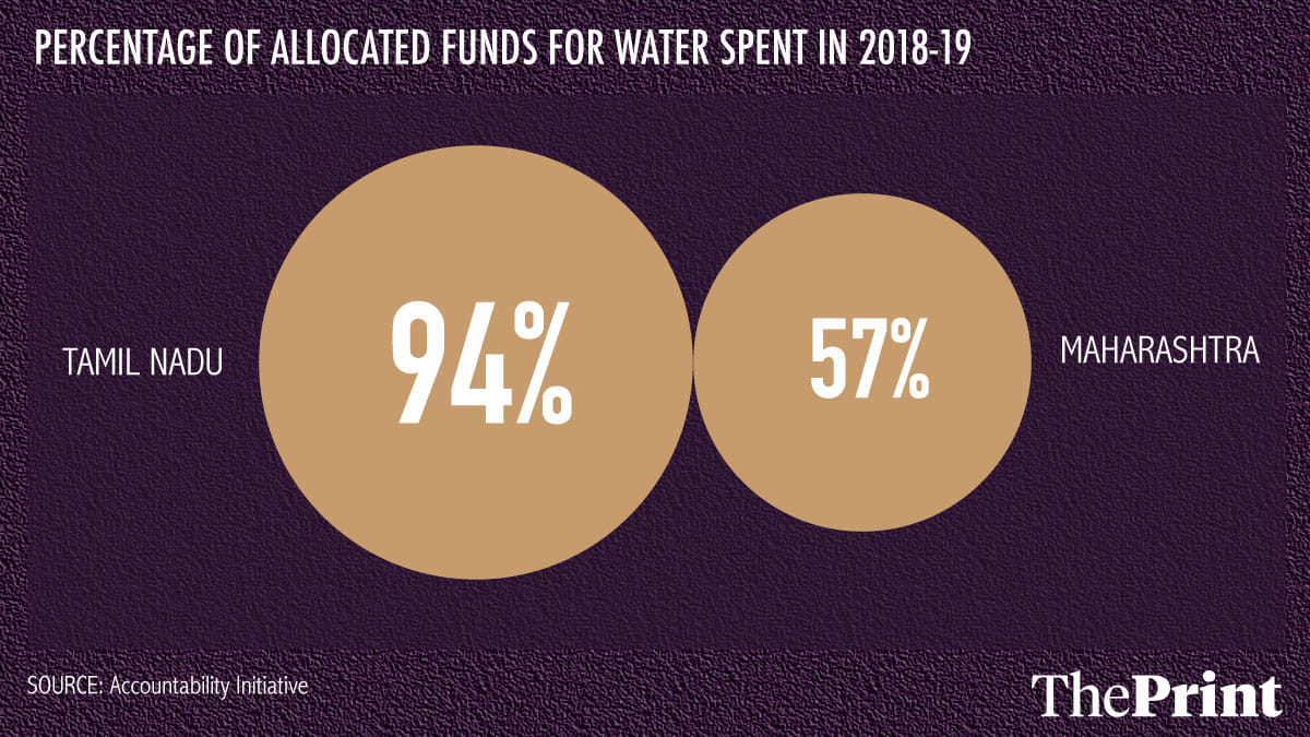 State governments, including in some of the most water-stressed states, regularly under-spend funds allocated to them for improving drinking water supply, according to data analysed by Accountability Initiative. Expenditure as a proportion of funds available has been steadily decreasing over the years; in FY 2014-15, of the total funds available for the National Rural Drinking Water Programme, 84 per cent was spent, which fell to 72 per cent in 2017-18 and then to 65 per cent in 2018-19. Drought-hit Maharashtra spent just 50 per cent of its available funds in 2017-18.