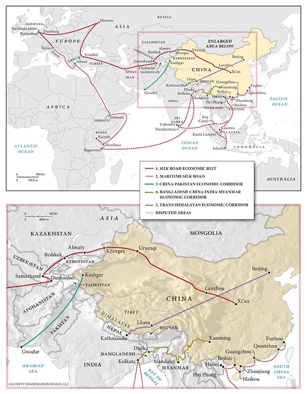 To best understand India’s concerns, it is helpful to examine four specific corridors that constitute major components of the BRI and run through India’s South Asian neighbourhood: the CPEC, the BCIM Economic Corridor, the Trans-Himalayan Economic Corridor, and the MSR.
