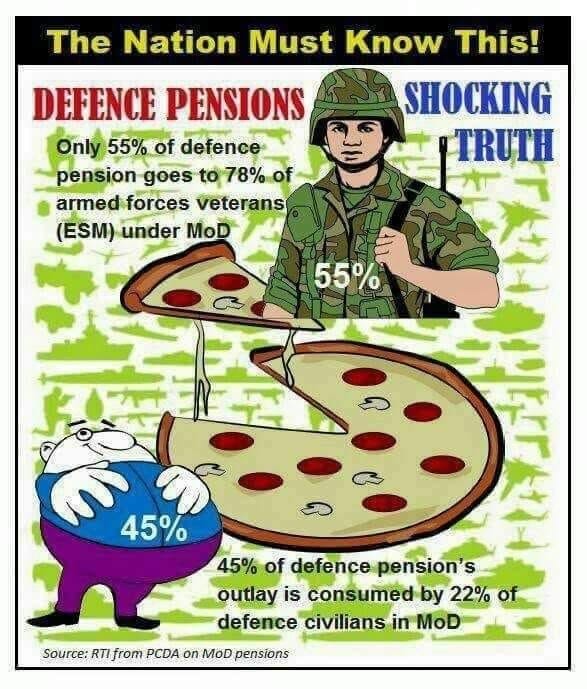 A picture doing the rounds in the WhatsApp groups of veterans is that defence civilians account for more than 45 per cent of the total defence pension expenditure. The solution implied is to just reduce the number of defence civilians to reduce the defence expenditure.