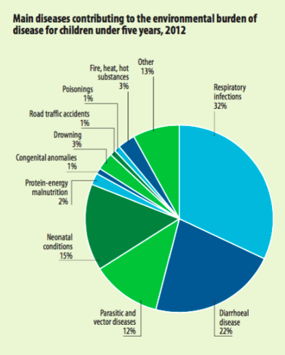 Of all the deaths among children under five, over a quarter were attributable to the environment in 2016. According to another study, respiratory infections accounted for 32 per cent of the environmental burden of disease among children in 2012.