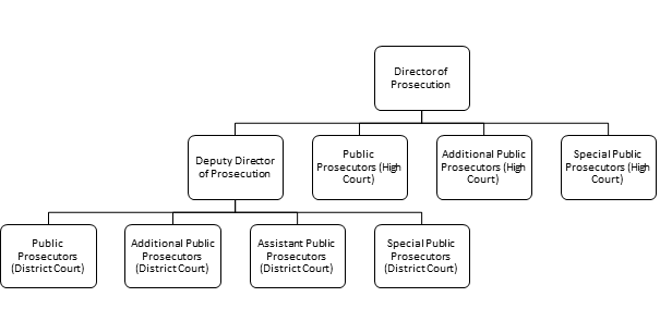 The 2005 amendment to the Code introduced section 25A which suggested the establishment of a well-structured Directorate of Prosecution separate from the control of police agencies and under the administrative control of the home department of the state governments. However, it still does allow for the level of functional autonomy required for public prosecutors to execute their role optimally. The figure below represents the structure of the Directorate as suggested by section 25A of the Code.