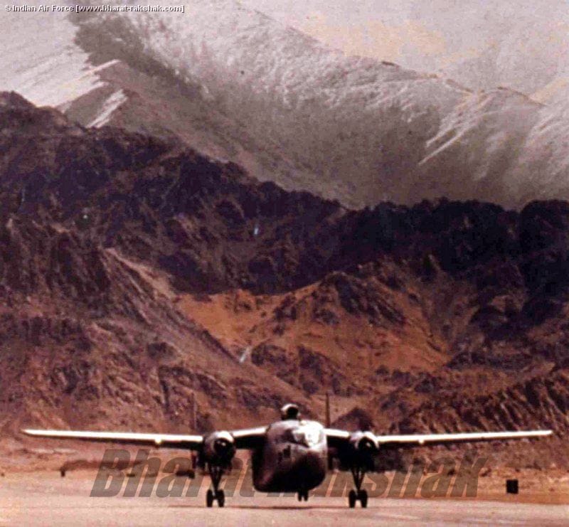 The IAF’s transport fleet consisted of DC-3 Dakota, Ilyushin-14, C-119 Packet, Otter light transport and limited number of An-12 medium lifters; the non-metalled road from Srinagar to Leh had closed due to onset of winter snow and hence the aircraft flew troops, sand bags, barbed wire, food stuff, ammunition et al from Chandigarh, Palam and bases in Punjab to Leh, Chushul, Fukche and Daulat Beg Oldie (DBO) in Ladakh. Scenes of bravery, enterprise and ingenuity were visible at every airbase, and transport crew flew day and night without rest. As the situation at DBO became critical, C-119 Packet aircraft operated to and from the unpaved strip situated at 17,000 feet; and these operations continued even when the Chinese advanced and encircled certain posts. Dropping to these posts continued in plain view of the Chinese and on one particular day, Sqn Ldr Chandan Singh, the captain of a Packet, felt his aircraft getting straddled by ground fire. He continued with the drop and on return to Chandigarh found 19 bullet holes in the fuselage.