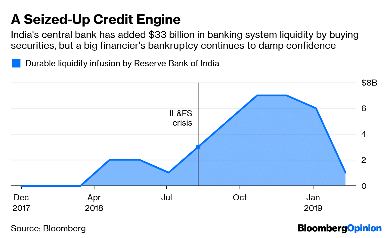 The panic attack from sudden IL&FS defaults in September made the funding markets wary. If the concerns were only about liquidity, they should have subsided by now. Yet shadow financiers’ borrowing costs are refusing to budge. This is despite authorities sequestering IL&FS’s $12.8 billion debt under a bankruptcy process; pumping $33 billion of durable liquidity into the banking system; marshaling state-run lenders to buy finance firms’ assets; and replacing a hawkish central bank governor with a former bureaucrat willing to cut interest rates and ease risk weights for bank advances to specialist lenders.