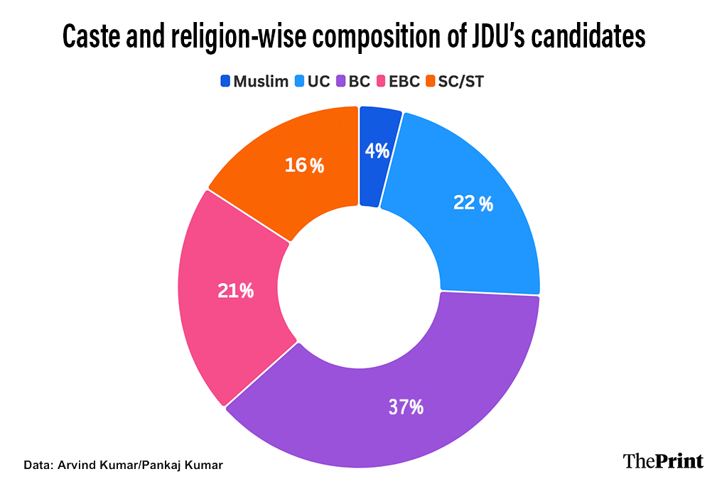 This is not correct way of analysis. Better you do for whole of NDA as they all four also aligned on which cast will represent how many seat. JDU may have give. Less seats to OBC but they are compensated by other NDA group parties by giving more seats to OBC. Not giving seats to Muslim is right approach as they now they don’t vote for JDU.