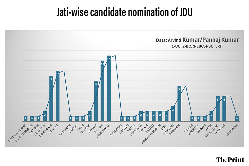 Caste does not always operate at the broader category level, but often at the level of individual jatis. Therefore, we also examined the jati-wise distribution of JDU’s candidate nomination.