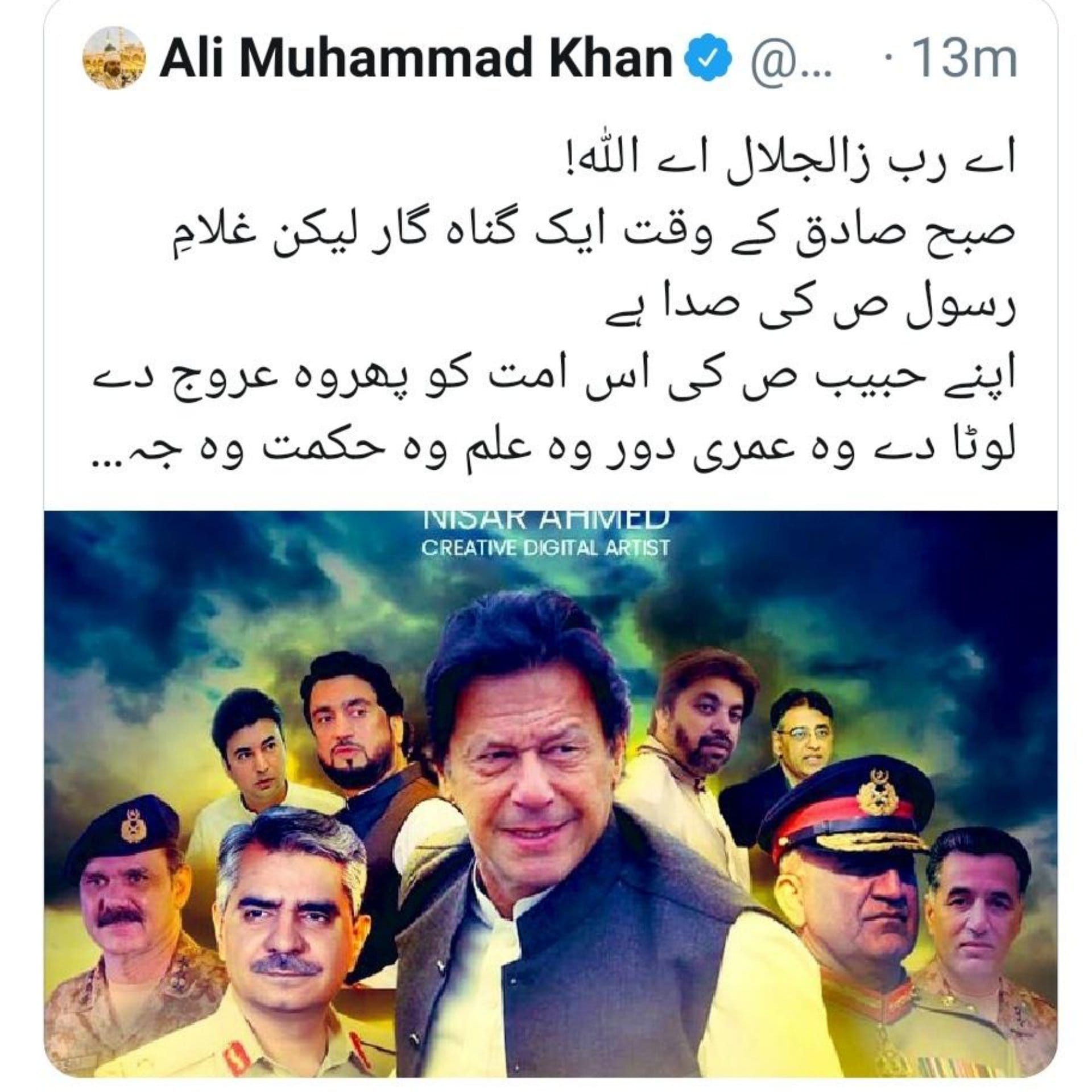 Taking the matter a bit too far was Ali Muhammad Khan, state minister of parliamentary affairs, who tweeted a photo praying to Allah to bring back the ‘golden era of Muslims’. In the photo, Imran Khan (as Ertuğrul) was flocked by Army Chief General Qamar Javed Bajwa and DG ISI Faiz Hameed. Other ministers were in the background. The post was taken down as some thought the order of men in the poster might not be what it perhaps is in reality.